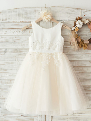Robes Cortège Enfant Bijou Cou Tulle Sans Manches Longueur Au Genou