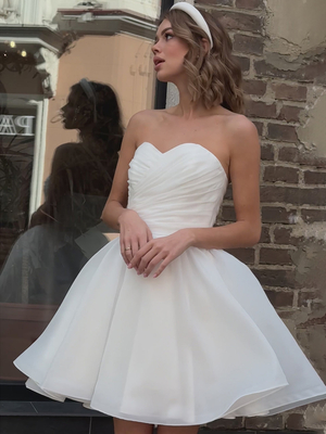 Robes de mariée courtes col en coeur sans manches robes de mariée courtes trapèze & Mariage > Robes de mariée > Robe de mariée courte