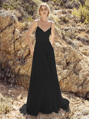 Robes De Mariée Noires Une Ligne En Mousseline De Soie Sans Manches