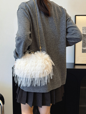 Sacs Femme Beige Frange Bandoulière à chaîne en Fausse Fourrure & Mode Femme > Accessoires > Sacs Femme
