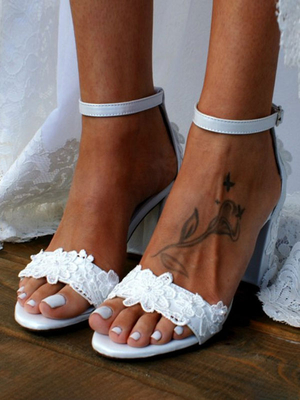 Sandales de mariée en cuir PU blanc sandales de mariage brodées à bout ouvert & Chaussures > Chaussures de mariage > Chaussures de mariée > Sandales de Mariée