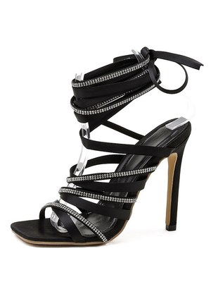 Sandales à Talons Hautes Fins Femmes à Lacets Décors avec Paillettes à Cuir Synthétique avec Bout Ouvert Unicolore sexy & Chaussures > Chaussures femme > Sandales > Sandales à talons hauts ...