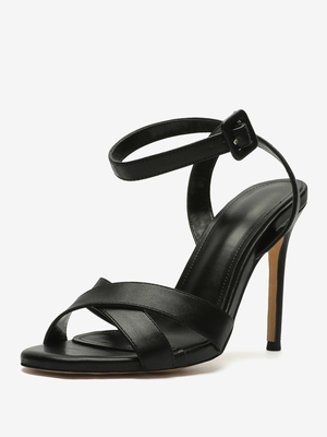 Sandales à Talons Noires Boucle Chaussures à Talons Aiguilles