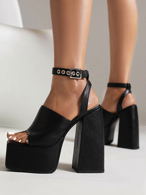 Sandales à talons pour femmes Bout carré Talon épais Sandales en cuir PU & Chaussures > Chaussures femme > Talons & Escarpins > Chaussures à plateaux ...