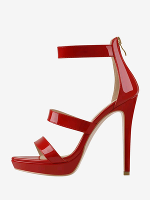 Sandales à talons pour femmes Escarpins en cuir verni à talon aiguille Talons noirs à bride à la cheville & Chaussures > Chaussures femme > Talons & Escarpins > Bouts ouverts ...