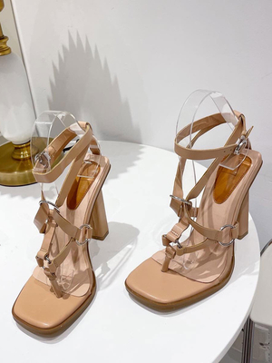Sandales à Talons Pour Femmes à Talons épais En Cuir PU Café