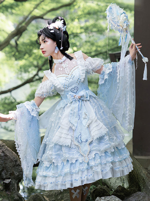 Style chinois Lolita JSK Robe Ensemble de 4 pièces Manches longues bleues Bowknot Choker Jumper Jupe Outfit & Déguisement > Vêtements de Lolita > Robes Lolita > Lolita de  Style Chinois ...