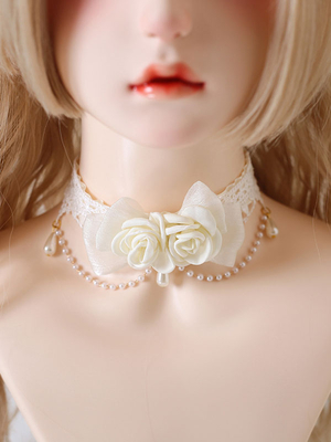 Sweet Lolita Accessoires Ecru White Pearls Rose Choker Divers & Vêtements de Lolita > Accessoires Lolita > Autres