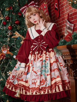 Sweet Lolita Dress Polyester Manches Courtes Volants Sweet Christmas Lolita Dress & Vêtements de Lolita > Robes Lolita > lolita douce ...