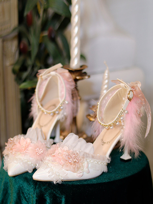Sweet Lolita Footwear Fleurs blanches Chaînes Volants PU Cuir Talon aiguille Escarpins Lolita & Vêtements de Lolita > Chaussures Lolita > Chaussures Lolita