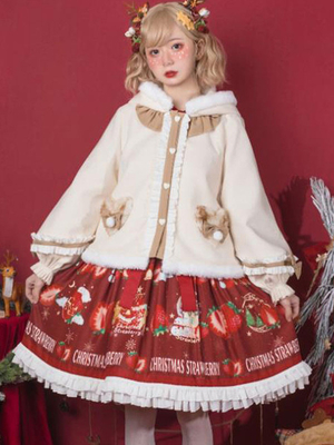 Sweet Lolita Manteaux Blanc Ecru à Volants Haut Synthétique Hiver Lolita Outwears Déguisements Halloween & Déguisement > Vêtements de Lolita > Manteaux & Vestes Lolita > Lolita Manteau