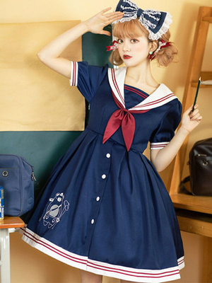Sweet Lolita OP Dress Neverland Ruffles Marine Floral Print Manches Courtes Lolita One Piece Robes & Déguisement > Vêtements de Lolita > Robes Lolita > Lolita Robes
