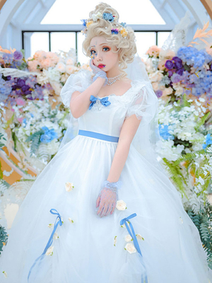 Sweet Lolita OP Dress Volants Blanc Imprimé Floral Manches Courtes Lolita One Piece Robes & Déguisement > Vêtements de Lolita > Robes Lolita > Lolita Robes