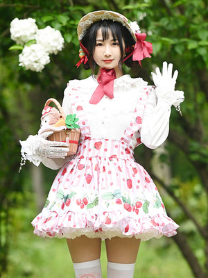 Sweet Lolita Overskirt Dentelle Fruits Rose Imprimé Floral Motif Feuille Lolita Mini Jupes & Déguisement > Vêtements de Lolita > Robes Lolita > Jupes Lolita