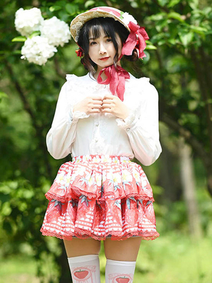 Sweet Lolita SK Fruit Floral Pattern Jupes Lolita en dentelle rose à plusieurs niveaux & Déguisement > Vêtements de Lolita > Robes Lolita > Jupes Lolita ...