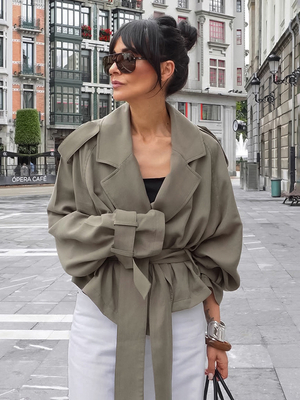 Veste coupe-vent courte à taille nouée pour femme 2026 & Mode Femme > Vestes et Manteaux > Trenchs Femme