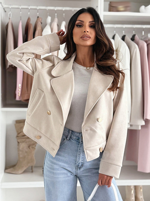 Veste courte à revers et boutons dorés croisés pour femme 2026 & Mode Femme > Vestes et Manteaux > Vestes Femme