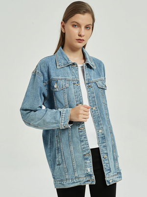 Veste en Denim Déchiré Femme Décontracté Femme à Col Revers avec Manches Longues avec Poches Unicolore & Mode Femme > Vestes et Manteaux > Vestes femme ...