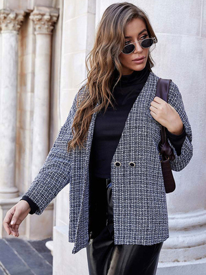 Veste Femme Boutons Col V Manteaux Plaid Polyester & Mode Femme > Vestes et Manteaux > Vestes femme