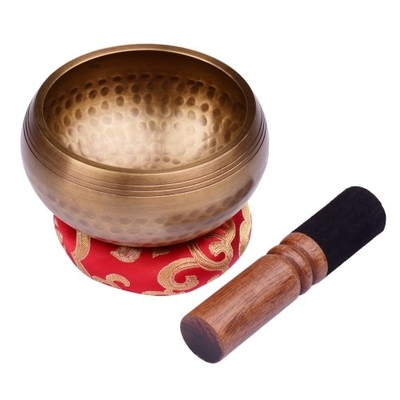 Ensemble de bols chantants tibétains Muslady Bol à échelle de calibre 9, 5 cm + bâton en bois ordinaire 12 * 2 cm + coussin carré rouge de 10 cm ...