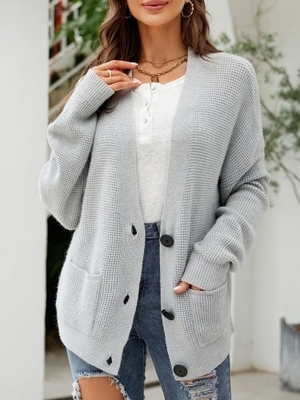 Femmes Cardigan à Manches Longues Boutons Col En V Lâche Tricoté