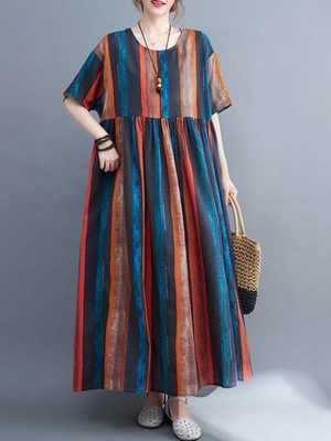Femmes Robe Ample Avec Poches Vintage Imprimé à Manches Courtes