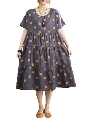 Femmes Robe Ample à Pois Imprimé à Manches Courtes Robe De Plage