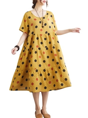 Femmes Robe Ample à Pois Imprimé à Manches Courtes Robe De Plage