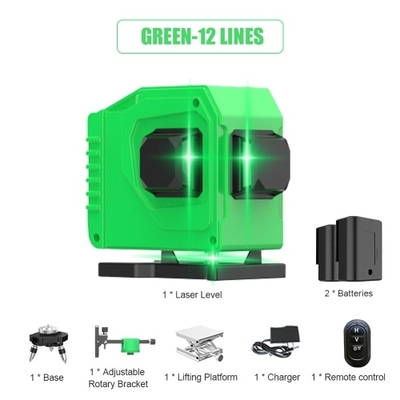 Niveau laser infrarouge 12 lignes 3D 16 lignes 4D Cross-line Vert Bleu Laser-beam Vertical et Horizontal Self-leveling Cross-line Puissant avec télécommande