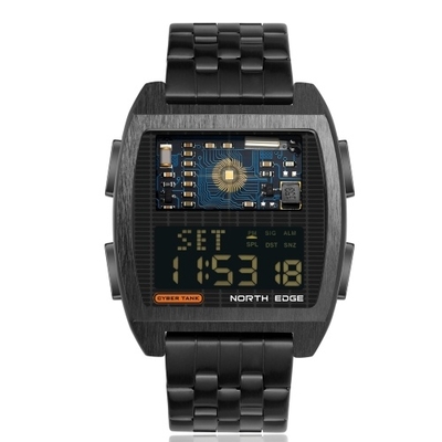 NORTH EDGE Cyber Tank Hommes Montre de Sport Numérique 50M Montre-Bracelet Étanche avec Chronomètre Réveil LED Rétroéclairage