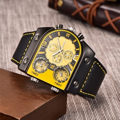 OULM Hommes Trois Fuseaux Horloges En Cuir Quartz Montre Cool Big Dial Montres Analogiques