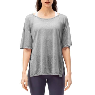 T-shirt ample pour femmes, demi-manches, fentes latérales pour le sport