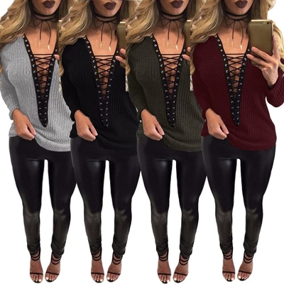 T-shirt à Lacets Femme à Manches Longues à Manches Longues