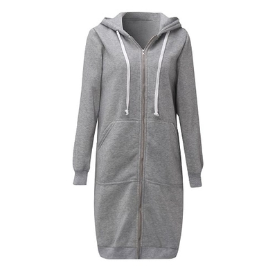 Nouveau Mode Femmes Hoodie longues Sweatshirts Manteau Pockets Casual Zipper solides manteaux Veste